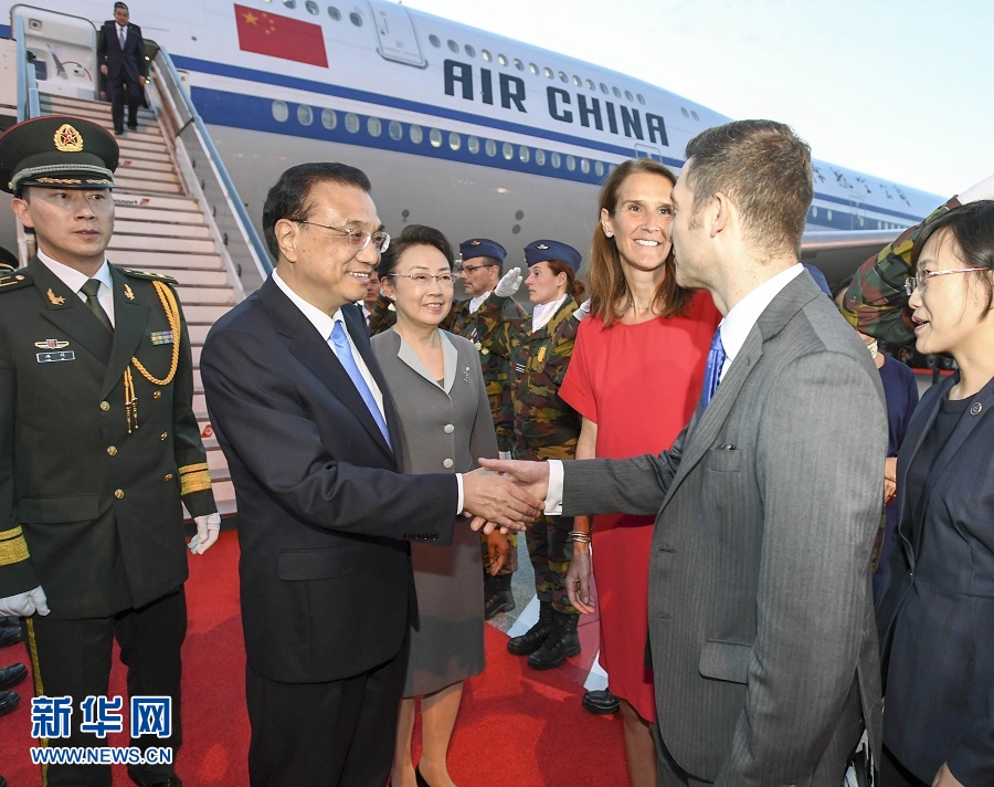 李克強(qiáng)總理夫人程虹,國務(wù)委員兼外交部長(zhǎng)王毅,全國政協(xié)副主席、國家發(fā)展和改革委員會(huì)主任何立峰等陪同人員同機(jī)抵達(dá)。比利時(shí)政府內(nèi)閣成員到機(jī)場(chǎng)迎接。禮兵沿紅地毯列隊(duì),號(hào)手吹號(hào)致敬。中國駐歐盟使團(tuán)團(tuán)長(zhǎng)張明、中國駐比利時(shí)大使曹忠明等也到機(jī)場(chǎng)迎接。