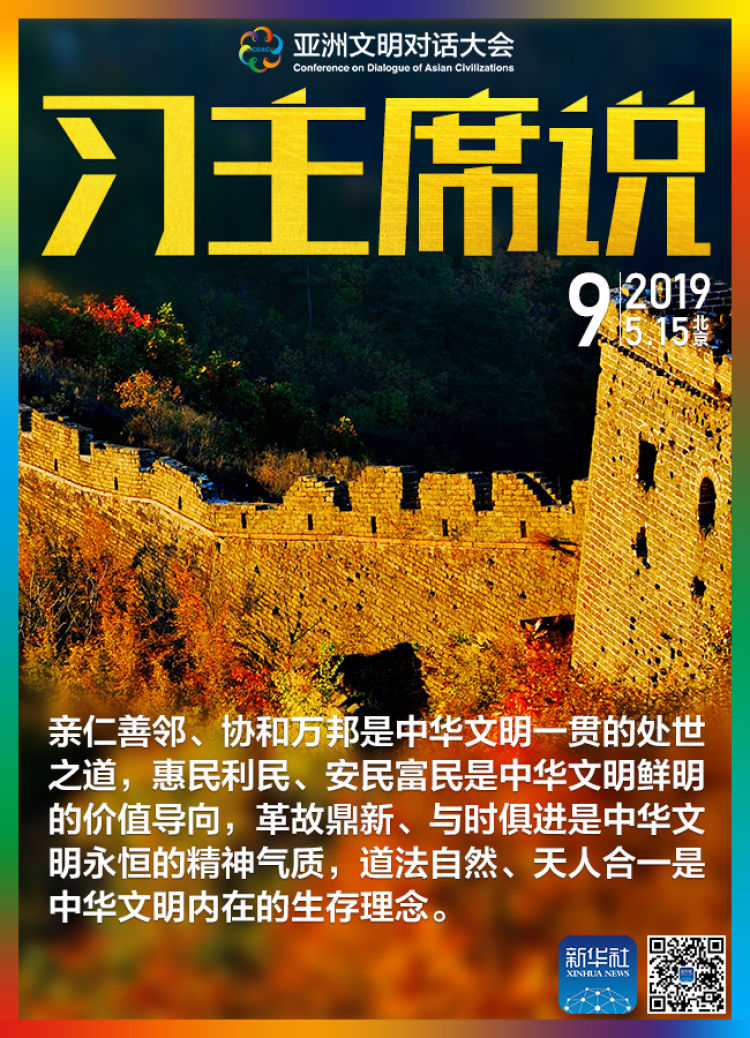 親仁善鄰、協和萬邦是中華文明一貫的處世之道,惠民利民、安民富民是中華文明鮮明的價值導向,革故鼎新、與時俱進是中華文明永恒的精神氣質,道法自然、天人合一是中華文明內在的生存理念。