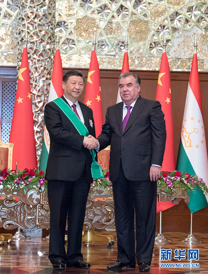 習近平表示,拉赫蒙總統授予我“王冠勛章”,飽含著全體塔吉克斯坦人民對中國人民的深情厚誼,我對此十分珍視。我愿同拉赫蒙總統一道,推動中塔全面戰略伙伴關系不斷邁上新臺階,更好造福兩國人民。