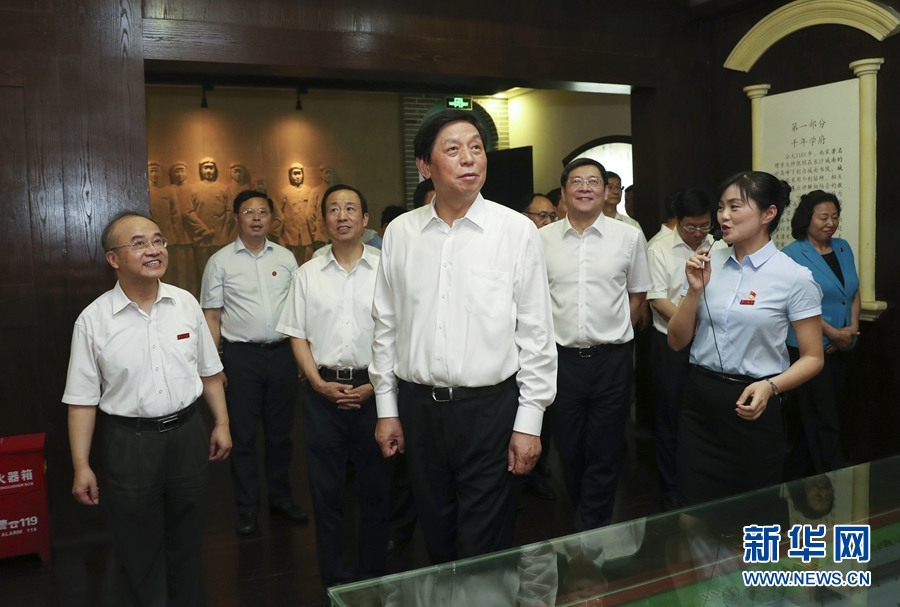 7月23日至25日,中共中央政治局常委、全國人大常委會委員長栗戰書在湖南調研。這是7月23日,栗戰書來到湖南省立第一師范學校舊址,重溫毛澤東等老一輩革命家在這里學習、工作和從事革命活動的經歷。 新華社記者 姚大偉 攝
