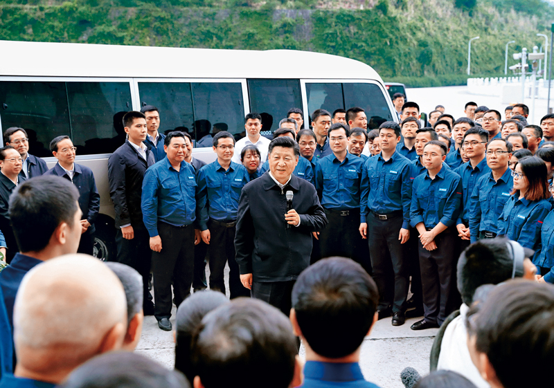 2018年4月26日下午,中共中央總書記、國家主席、中央軍委主席習(xí)近平在武漢主持召開深入推動長江經(jīng)濟(jì)帶發(fā)展座談會并發(fā)表重要講話。這是座談會前,習(xí)近平于24日下午在三峽大壩左岸電站考察。 新華社記者 謝環(huán)馳/攝