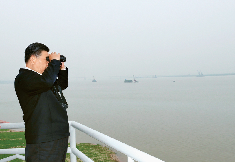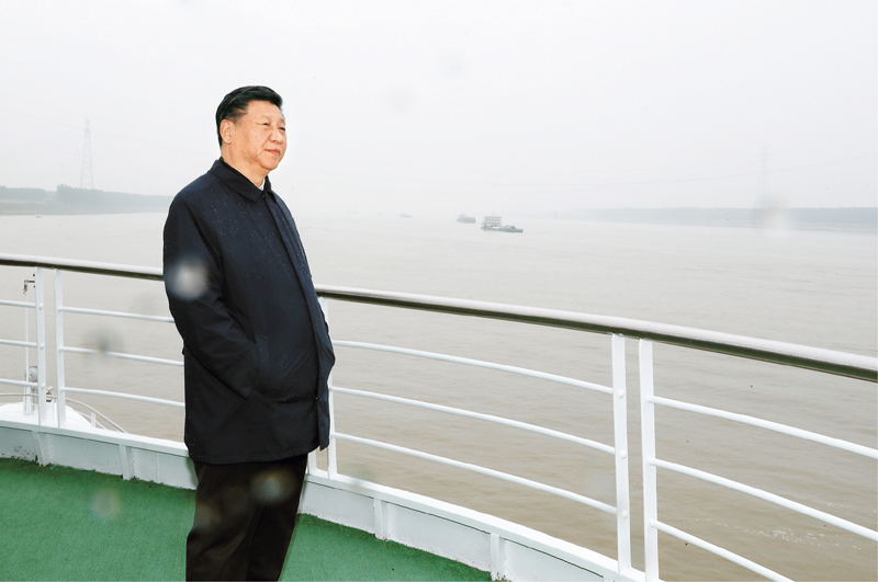 2018年4月26日下午,中共中央總書記、國家主席、中央軍委主席習(xí)近平在武漢主持召開深入推動長江經(jīng)濟(jì)帶發(fā)展座談會并發(fā)表重要講話。這是座談會前,習(xí)近平于25日上午乘船沿江察看兩岸生態(tài)環(huán)境和發(fā)展建設(shè)情況。 新華社記者 謝環(huán)馳/攝