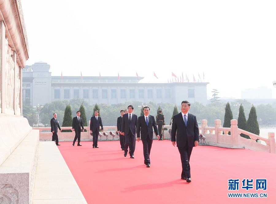 9月30日上午,習近平、李克強、栗戰(zhàn)書、汪洋、王滬寧、趙樂際、韓正、王岐山等黨和國家領導人來到北京天安門廣場,出席烈士紀念日向人民英雄敬獻花籃儀式。儀式前,習近平等來到毛主席紀念堂瞻仰毛澤東同志遺容。新華社記者 鞠鵬 攝