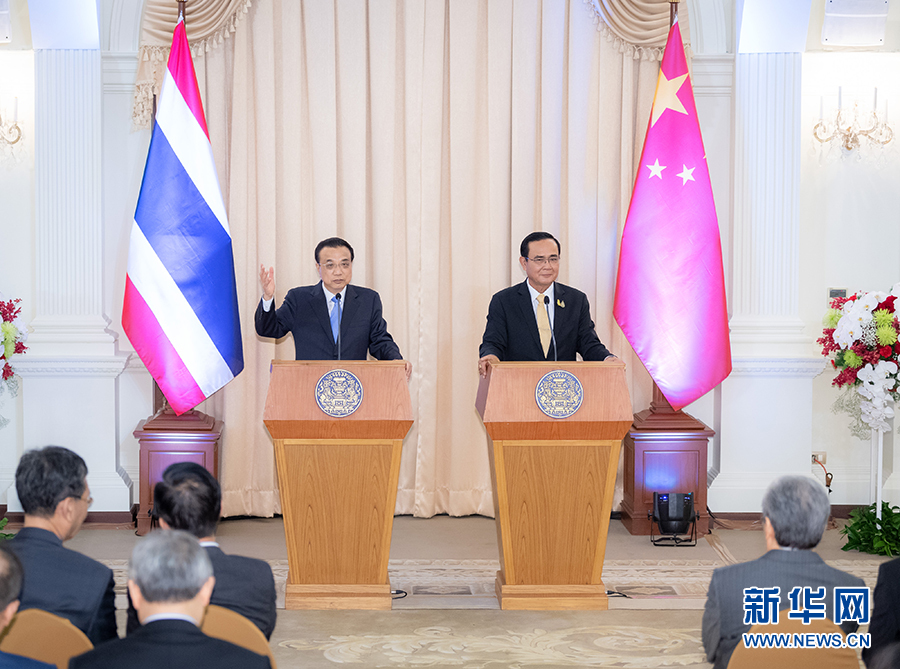 兩國(guó)總理積極評(píng)價(jià)中泰合作取得的新成果。李克強(qiáng)表示,泰國(guó)是中國(guó)平等、互利的好朋友和好伙伴。雙方互補(bǔ)優(yōu)勢(shì)強(qiáng)、合作潛力大。中泰兩國(guó)的合作,正如曼谷湄南河上航行的長(zhǎng)尾船,同舟共濟(jì),快速前進(jìn),行穩(wěn)致遠(yuǎn)。我們?cè)竿┓焦餐Γ罨类徲押藐P(guān)系,合作應(yīng)對(duì)挑戰(zhàn),實(shí)現(xiàn)互利共贏。