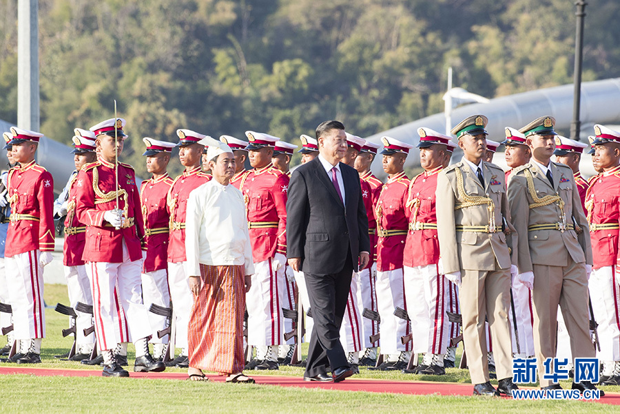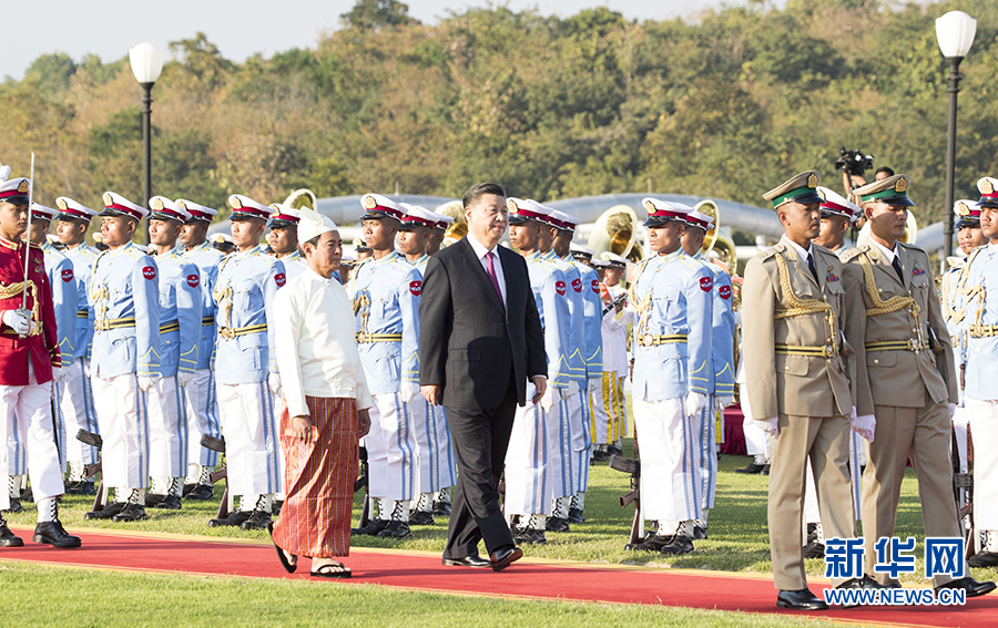 新華社內比都1月17日電(記者蔣國鵬)當地時間1月17日下午,國家主席習近平在內比都總統府出席緬甸總統溫敏舉行的隆重歡迎儀式。