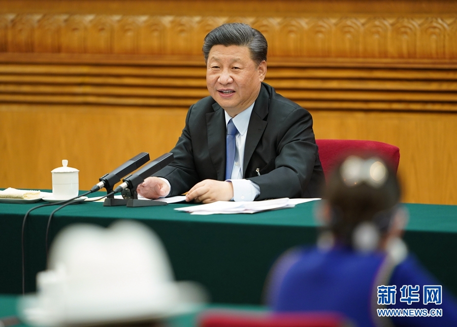 5月22日,中共中央總書記、國家主席、中央軍委主席習近平參加十三屆全國人大三次會議內蒙古代表團的審議。 新華社記者 謝環馳 攝