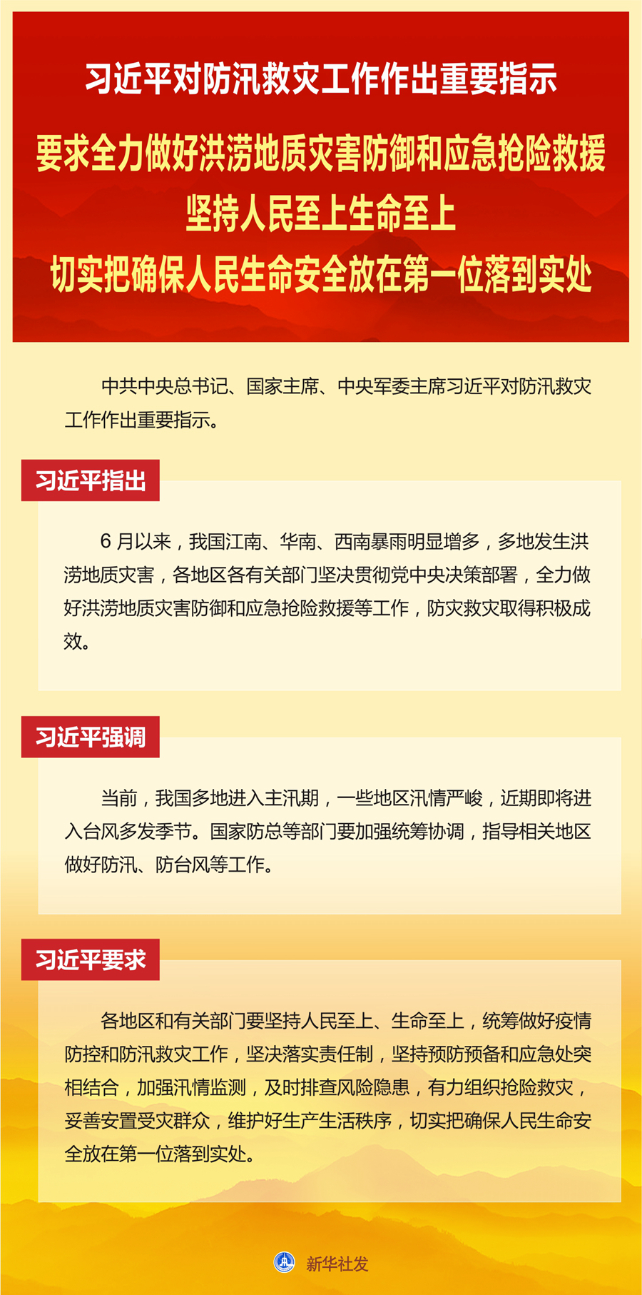 新華社北京6月28日電 中共中央總書記、國家主席、中央軍委主席習近平對防汛救災工作作出重要指示。