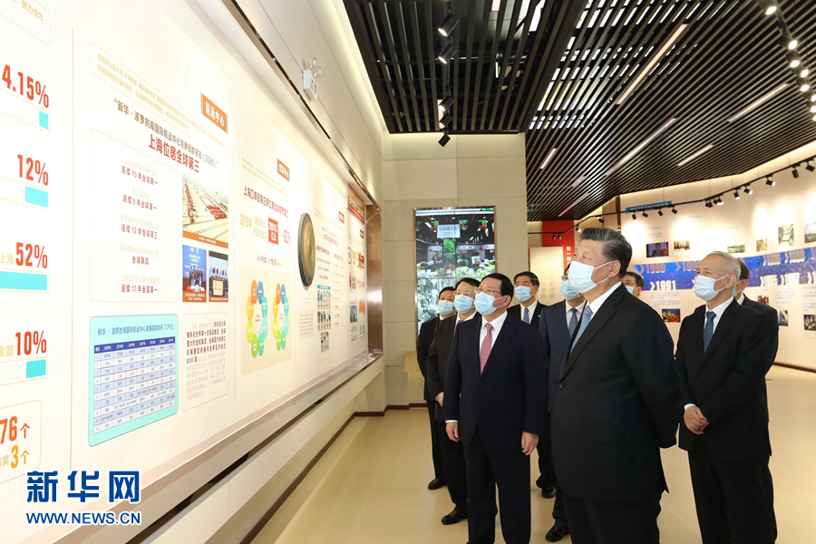 當天上午,習近平等還參觀了“在國家戰略的引領下——浦東開發開放30周年主題展”,親切會見了參加慶祝大會的部分代表并同大家合影留念。