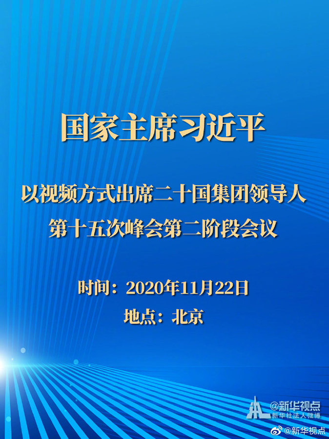 國家主席習近平11月22日晚在北京以視頻方式出席二十國集團領導人第十五次峰會第二階段會議。 ???