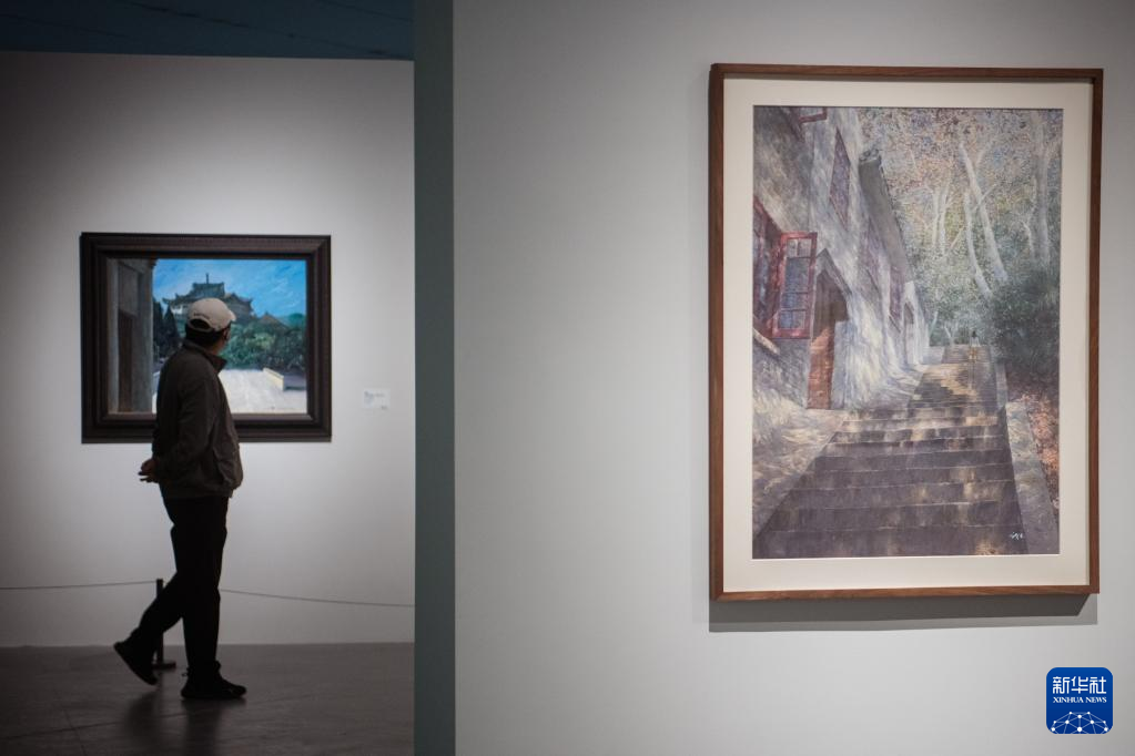 3月16日,参观者观看展出作品。