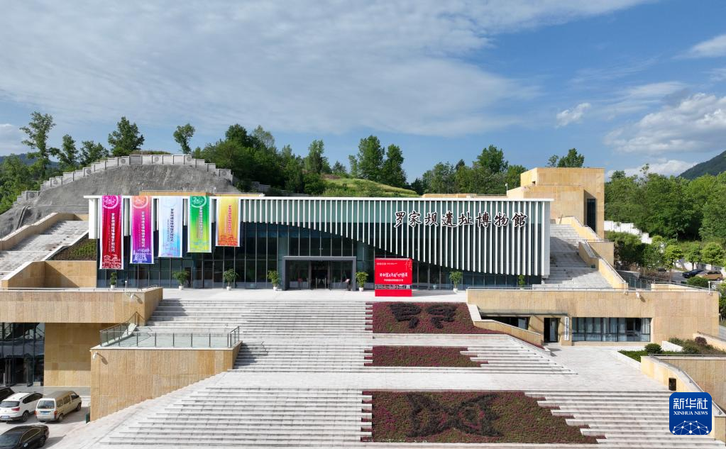这是罗家坝遗址博物馆外景(4月26日摄,无人机照片)。