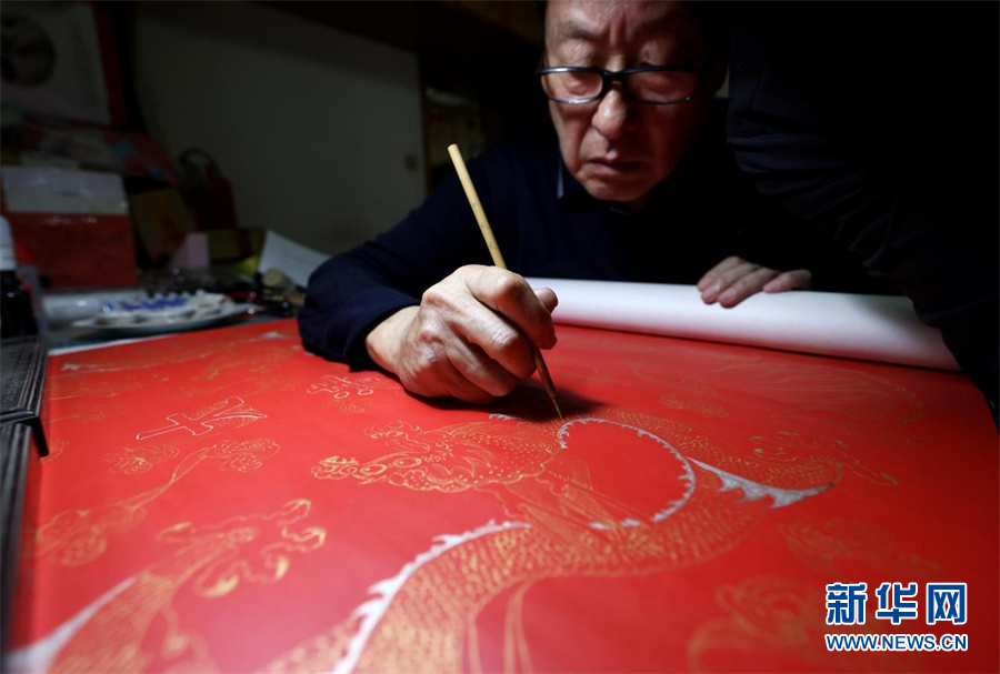 近日,宫廷描金纸省级非遗传承人范发生在进行描金纸画稿拷贝。