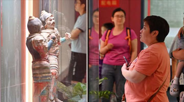 7月28日,参观者在“燕赵神韵——河北省民间文艺精品展”上拍照。
