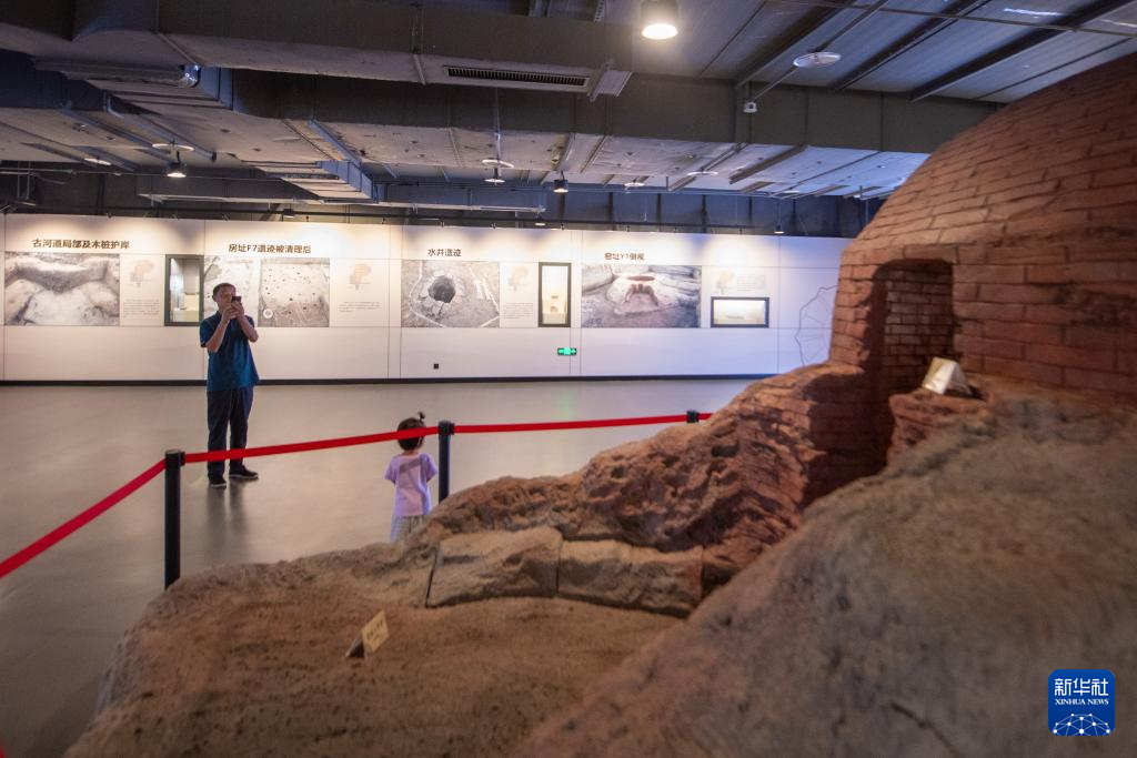 这是8月9日在杭州西站拍摄的“西站两千年——李家塘遗址文物展”展区。