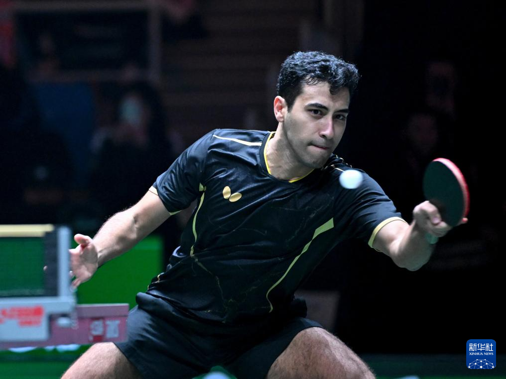 12月1日,埃及队选手约瑟夫·阿卜杜拉齐兹在男单比赛中回球。他0比3不敌中国队选手王楚钦。