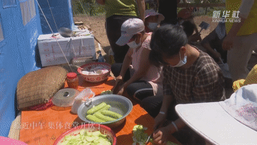 人們?cè)谂R時(shí)搭建的簡(jiǎn)易廚房忙碌