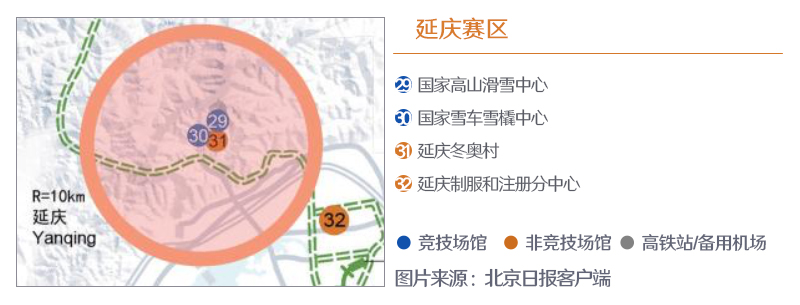 ??? 核心區位于山頂海拔2199米的小海坨山, 山的南麓將建設國家高山滑雪中心、國家雪車雪橇中心兩個競賽場館和延慶冬奧村、延慶山地新聞中心兩個非競賽場館。