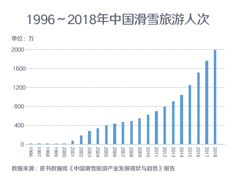 ??? 從1996年發展至今, 我國滑雪旅游人次實現了質的飛躍。截至2018年底, 我國滑雪人次為1970萬, 同比增長12.57%?;邶嫶蟮幕┤舜魏褪袌鲆幠?中國已被認為是全球主要滑雪市場之一,年滑雪人次已超過一些擁有成熟滑雪市場的國家。