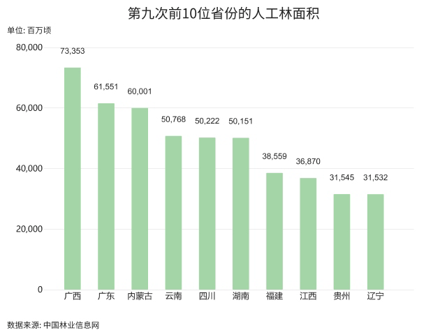 ??? 根據《2020年中國國土綠化狀況公報》顯示,全國完成造林677萬公頃、森林撫育837萬公頃。40多年來,我國森林面積、森林覆蓋率、森林蓄積分別增長1倍左右,對全球植被增量的貢獻比例居世界首位。