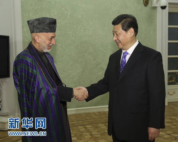 ????習(xí)近平指出,2014年之后,阿富汗的命運(yùn)將更加緊密地同地區(qū)國家聯(lián)系在一起。中方支持阿富汗融入地區(qū)經(jīng)濟(jì)合作。中方將于8月舉辦阿富汗問題伊斯坦布爾進(jìn)程第四次外長會,我們愿同阿方密切合作,辦好這次會議。中方也愿推動上海合作組織在阿富汗問題上發(fā)揮更大作用。