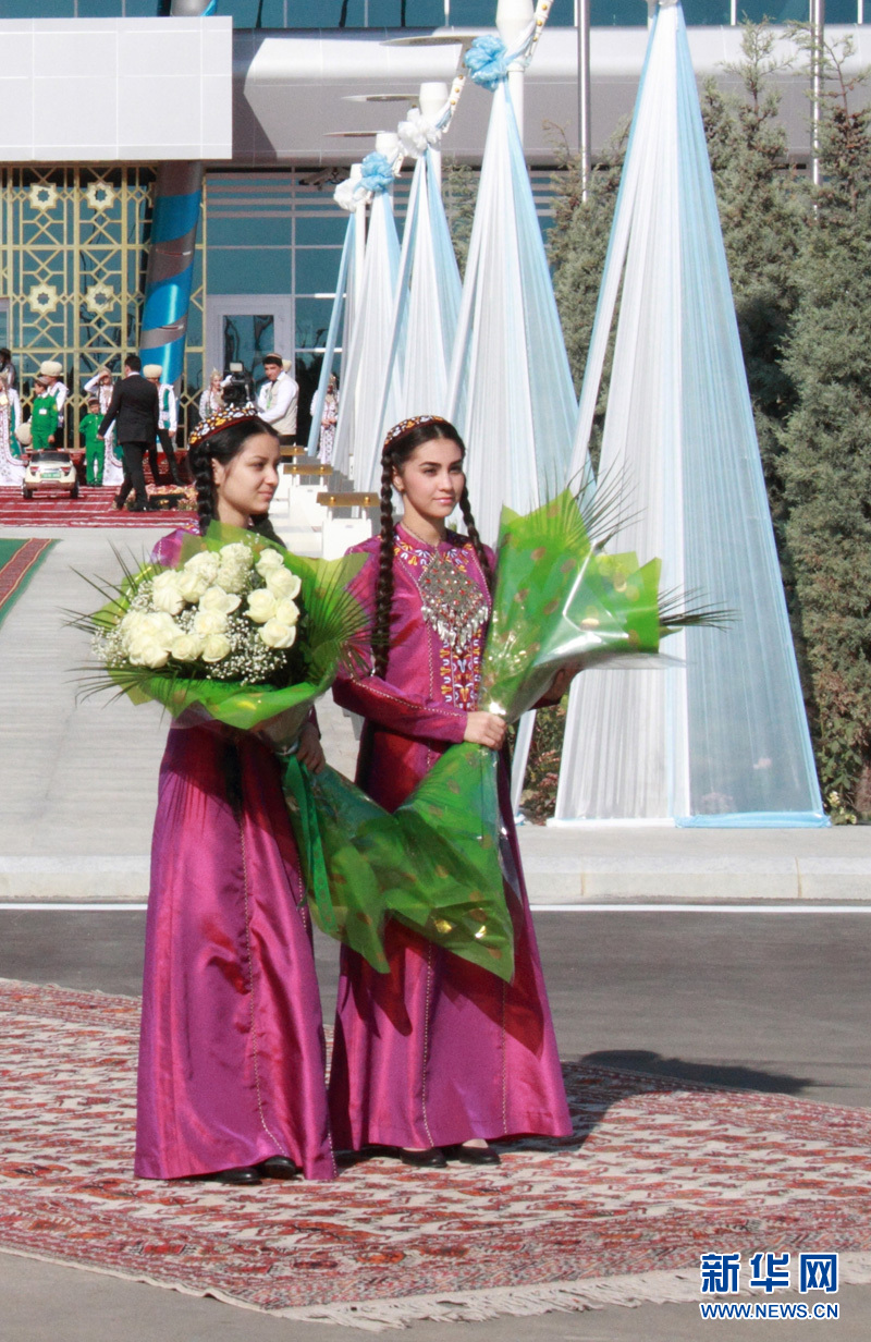 準(zhǔn)備向總統(tǒng)獻(xiàn)花的土庫曼斯坦美女? 記者 盧敬利攝