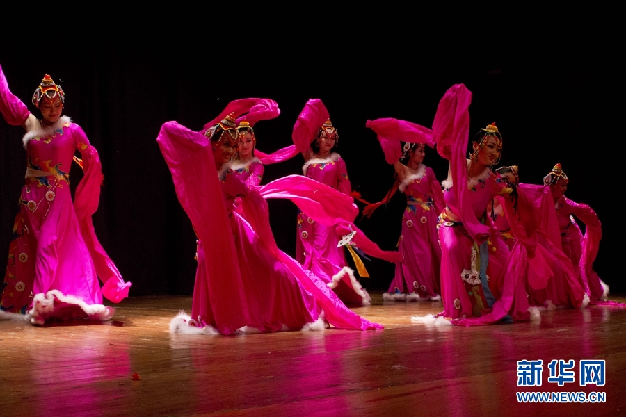 來自中南民族大學的演員在臺上表演。新華網發 Xesco攝