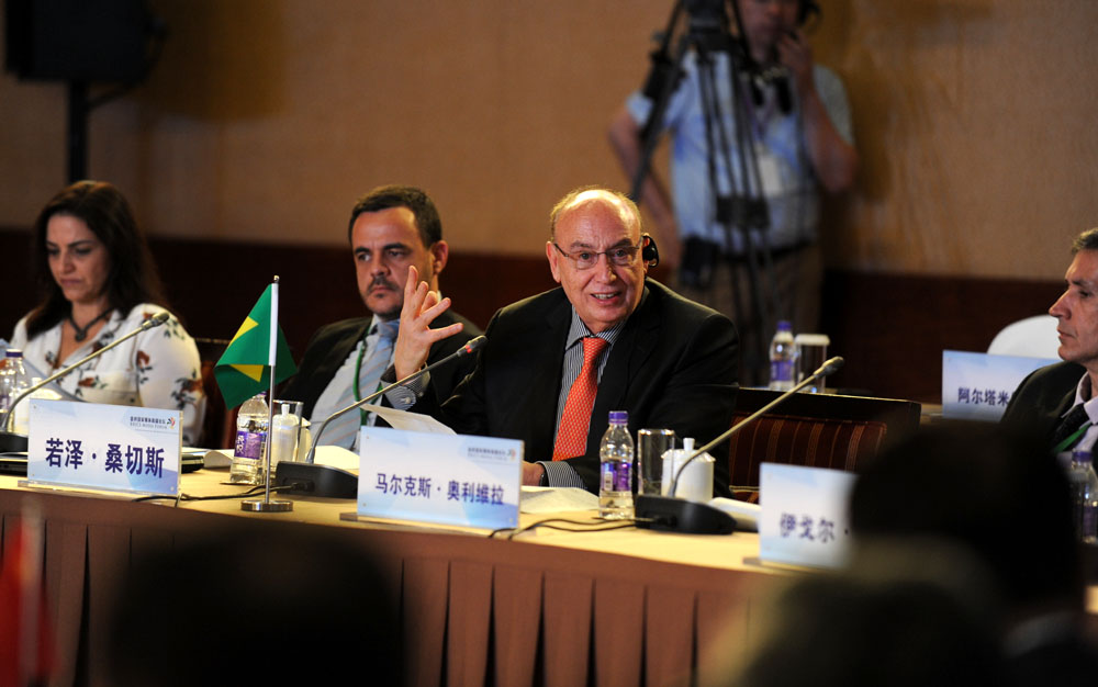 金磚國家媒體高端論壇開幕式6月8日在北京舉行。圖為論壇共同主席、巴西金融資訊集團總裁若澤·桑切斯發表講話。 新華網 孫韜 攝