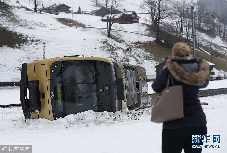 風暴“埃莉諾”襲擊瑞士 火車被大風吹脫軌