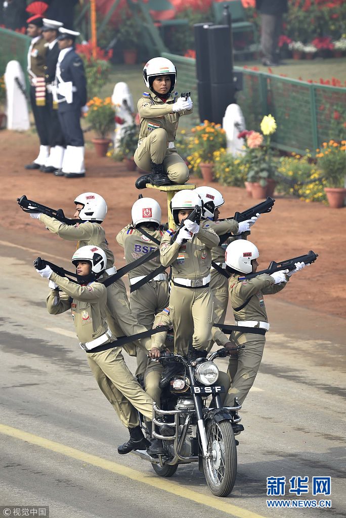 印度舉行閱兵游行慶祝第69個(gè)共和國(guó)日 摩托車(chē)隊(duì)再展“神技”