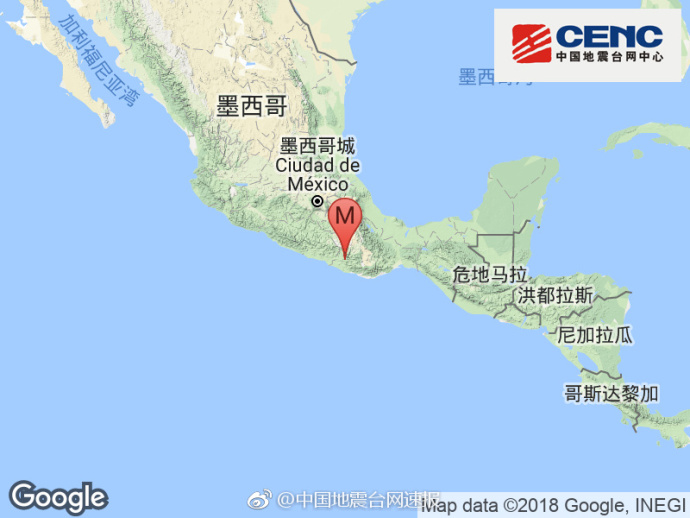 地震發生在當地時間16日17時39分(北京時間17日7時39分),震中位于瓦哈卡州皮諾特帕納雄耐爾以南11公里的海域,震源深度為12公里。目前墨西哥民防部門已啟動緊急預案,核查傷亡損失。墨西哥城市長曼塞拉表示墨西哥城秩序正常,尚未有人員傷亡報告。