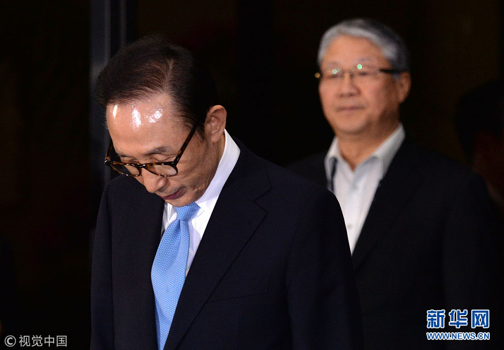 3月15日,韓國首爾,韓國前總統李明博在接受了檢方超過21小時的調查后返家。他涉嫌包括受賄、挪用公款等在內的20多項罪名,同時也是韓國第五位被檢方調查的前總統。(圖片來源:視覺中國)