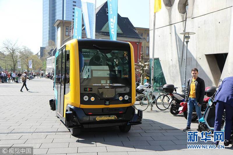 4月17日,德國法蘭克福,法蘭克福應(yīng)用科學(xué)大學(xué)測(cè)試自動(dòng)駕駛擺渡巴士。(圖片來源:視覺中國)