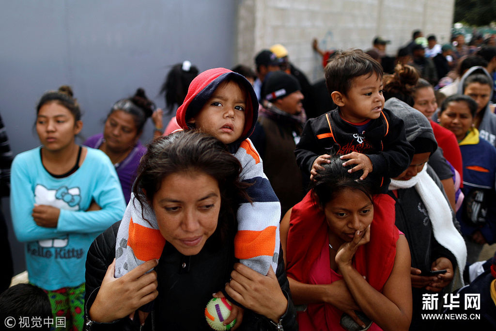 ??? 當地時間4月27日,墨西哥提華納,中美洲移民領取早餐。一批中美洲尋求避難人群抵達墨西哥北部邊陲城市提華納,距離他們的最終目的地——美國加利福尼亞州僅“一步之遙”。(圖片來源:視覺中國)
