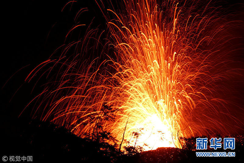 夏威夷火山持續噴發 熔巖噴涌火星四濺