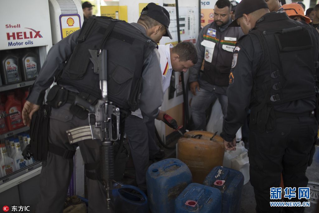 5月28日,巴西里約,巴西全國卡車司機罷工持續長達一周,導致燃料和食品短缺,民眾排隊購買汽油。(圖片來源:東方IC)