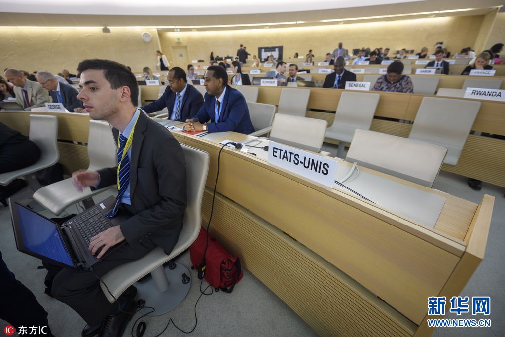 6月20日,瑞士日內(nèi)瓦,聯(lián)合國(guó)人權(quán)理事會(huì)召開會(huì)議,美國(guó)代表席位空缺。美國(guó)常駐聯(lián)合國(guó)代表黑莉19日下午在華盛頓宣布,美國(guó)退出聯(lián)合國(guó)人權(quán)理事會(huì)。(圖片來(lái)源:東方IC)