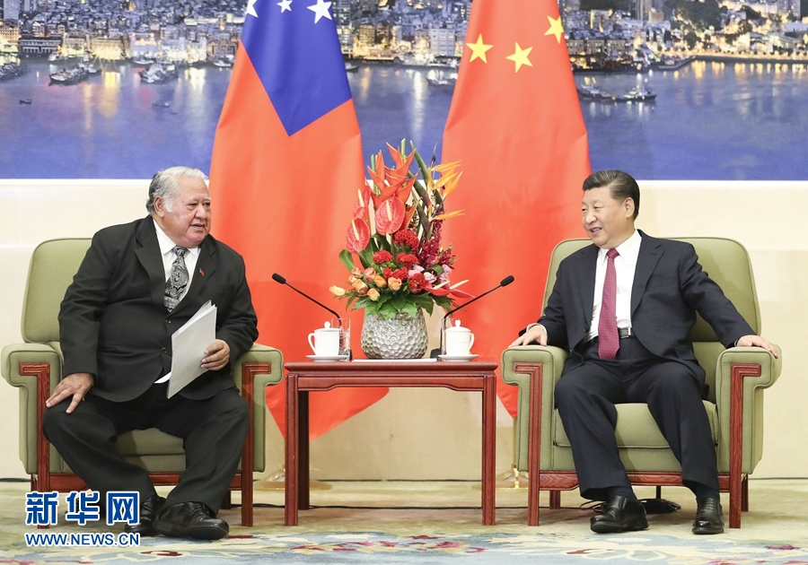 9月18日,國家主席習(xí)近平在北京人民大會堂會見來華出席夏季達沃斯論壇的薩摩亞總理圖伊拉埃帕。 新華社記者丁林?jǐn)z