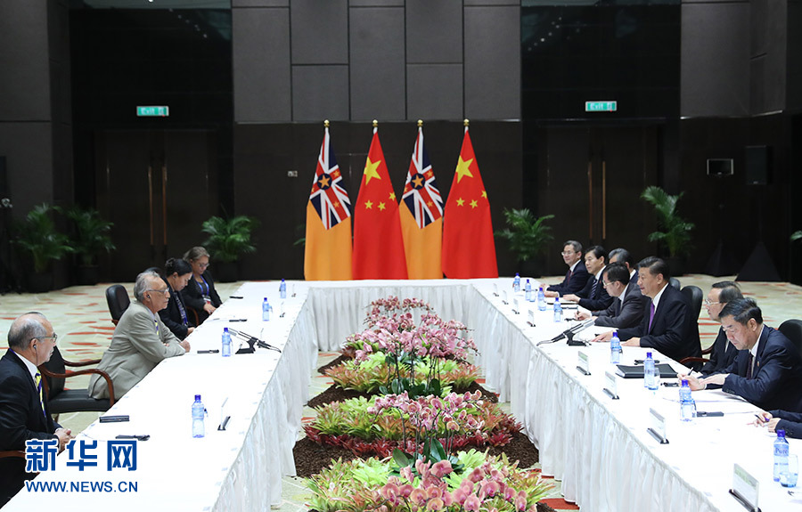 在會見紐埃總理塔拉吉時,習近平強調,中方將繼續秉持正確義利觀和真實親誠理念發展同紐埃關系。中方歡迎紐方積極參與“一帶一路”合作,更好實現同域內外國家互聯互通。中方愿同紐方加強氣候變化南南合作以及海洋、環境保護等方面合作,推進綠色、低碳、可持續發展。