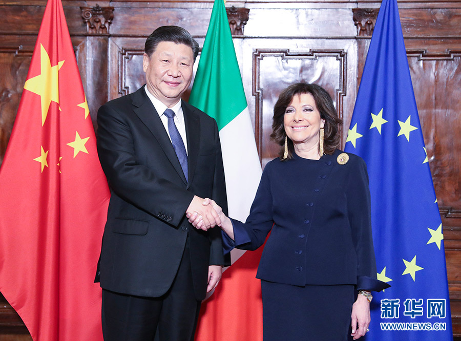 3月22日,國(guó)家主席習(xí)近平在羅馬會(huì)見(jiàn)意大利參議長(zhǎng)卡塞拉蒂。 新華社記者 姚大偉 攝