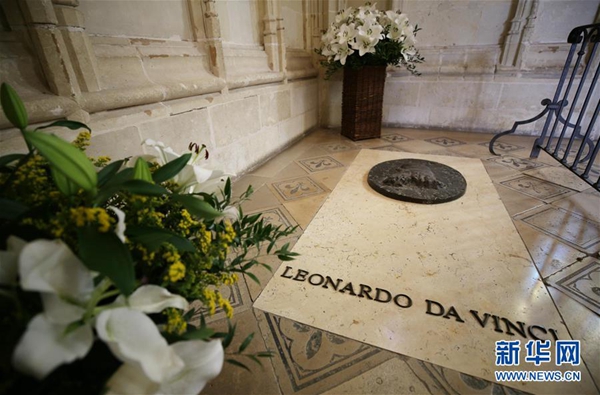 這是5月1日在法國昂布瓦茲皇家城堡的圣·于貝爾禮拜堂拍攝的達·芬奇墓。新華社記者 高靜 攝