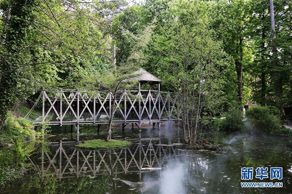 這是5月1日在法國昂布瓦茲的克洛·呂斯城堡拍攝的達·芬奇的花園。新華社記者 高靜 攝