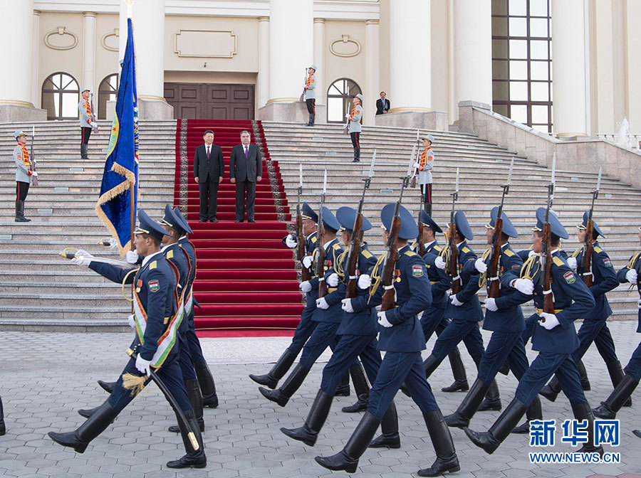 會談前,拉赫蒙在總統府前廣場為習近平舉行了盛大歡迎儀式。