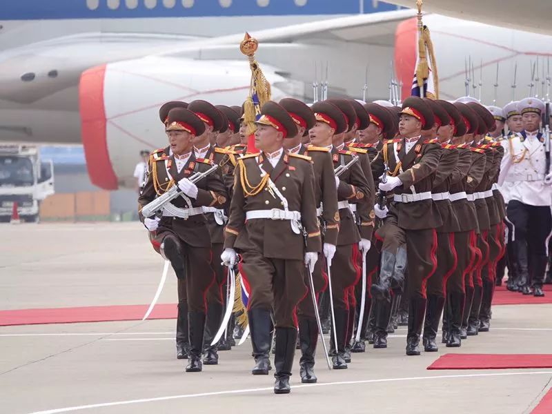 朝方在機(jī)場(chǎng)舉行隆重歡迎儀式。