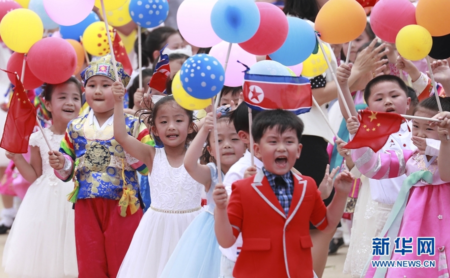 到處都是熱情的笑臉,友好的歡呼聲不絕于耳。習(xí)近平和金正恩向歡迎的人群頻頻揮手致意。