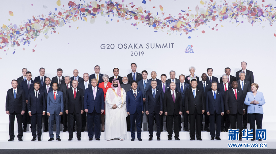 6月28日,二十國(guó)集團(tuán)領(lǐng)導(dǎo)人第十四次峰會(huì)在日本大阪舉行。國(guó)家主席習(xí)近平出席并發(fā)表題為《攜手共進(jìn),合力打造高質(zhì)量世界經(jīng)濟(jì)》的重要講話。這是習(xí)近平同其他與會(huì)領(lǐng)導(dǎo)人合影。 新華社記者 黃敬文 攝