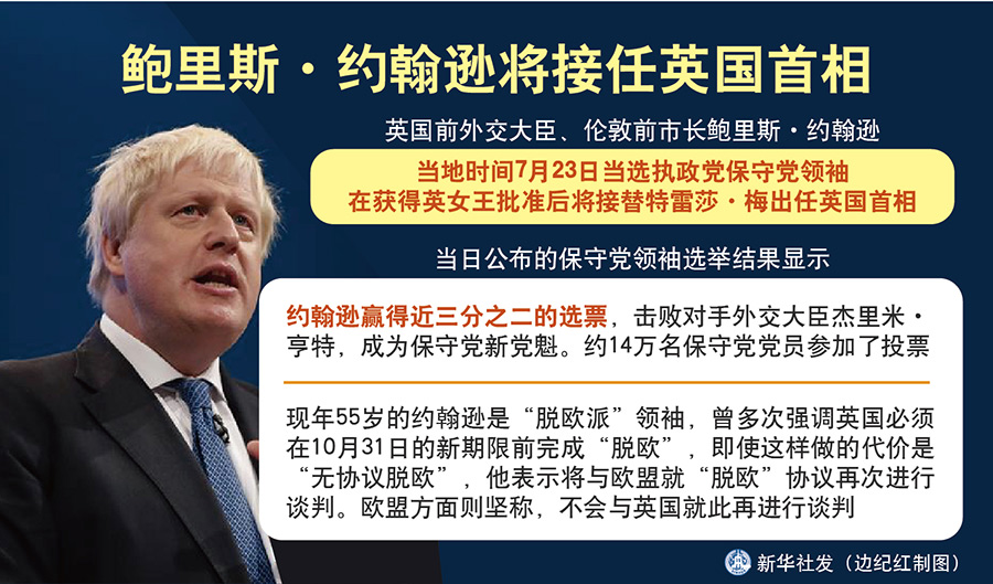 新華社倫敦7月23日電(記者桂濤 楊曉靜)英國(guó)前外交大臣、倫敦前市長(zhǎng)鮑里斯·約翰遜23日當(dāng)選執(zhí)政黨保守黨領(lǐng)袖,在獲得女王伊麗莎白二世批準(zhǔn)后將接任英國(guó)首相。