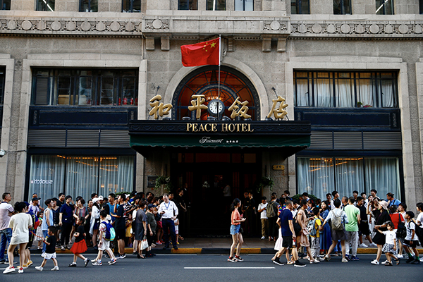 夜幕降臨,在燈光的輝映下,和平飯店更顯滄桑與榮耀。這座已有90年歷史的飯店曾經(jīng)見證過許多中美兩國交往的重要場景,不僅老布什、克林頓、奧巴馬等多位美國前政要曾來過這里,1971年美國乒乓代表團(tuán)訪問中國時,也曾住在這里。