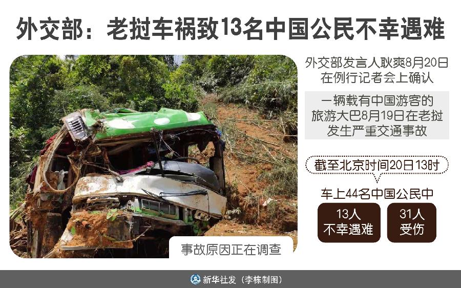 新華社北京8月20日電(記者 鄭明達(dá))外交部發(fā)言人耿爽20日在例行記者會(huì)上確認(rèn),一輛載有中國游客的旅游大巴19日在老撾發(fā)生嚴(yán)重交通事故,截至北京時(shí)間20日13時(shí),車上44名中國公民中,13人不幸遇難,31人受傷。