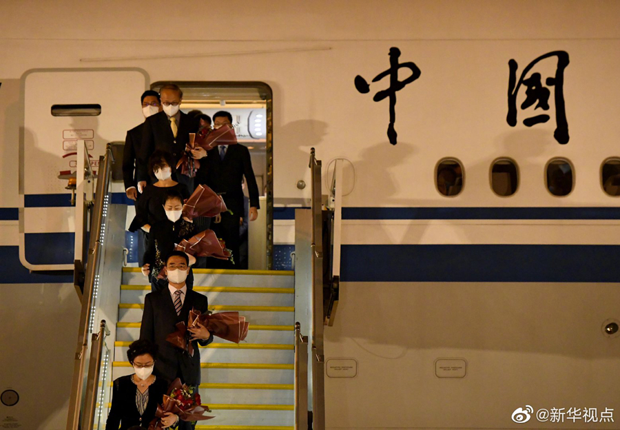 8月17日晚,中國(guó)駐休斯敦總領(lǐng)事館全體館員乘包機(jī)抵達(dá)北京,外交部在首都機(jī)場(chǎng)舉行簡(jiǎn)短莊重迎接儀式。(記者成欣、岳月偉) ????