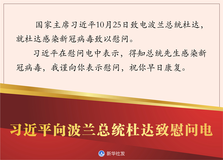 新華社北京10月25日電? 國家主席習近平10月25日致電波蘭總統杜達,就杜達感染新冠病毒致以慰問。